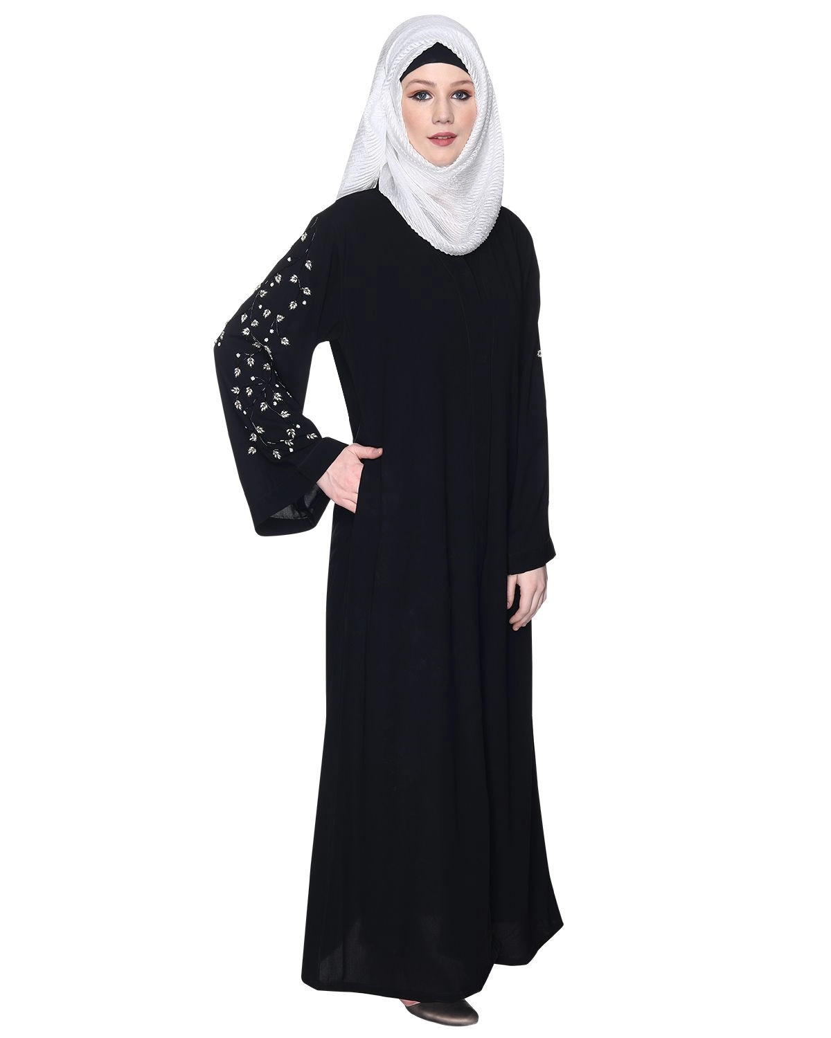 Abaya With Sparkling Hand-Embroidered Sleeves