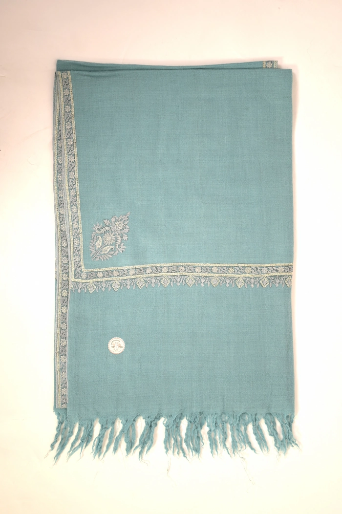 Aquamarine Pashmina shawl with embroidery (G.I certified)