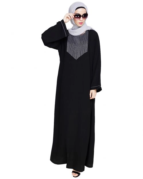 Black Abaya With Flashy Metallic Beads Embroidery