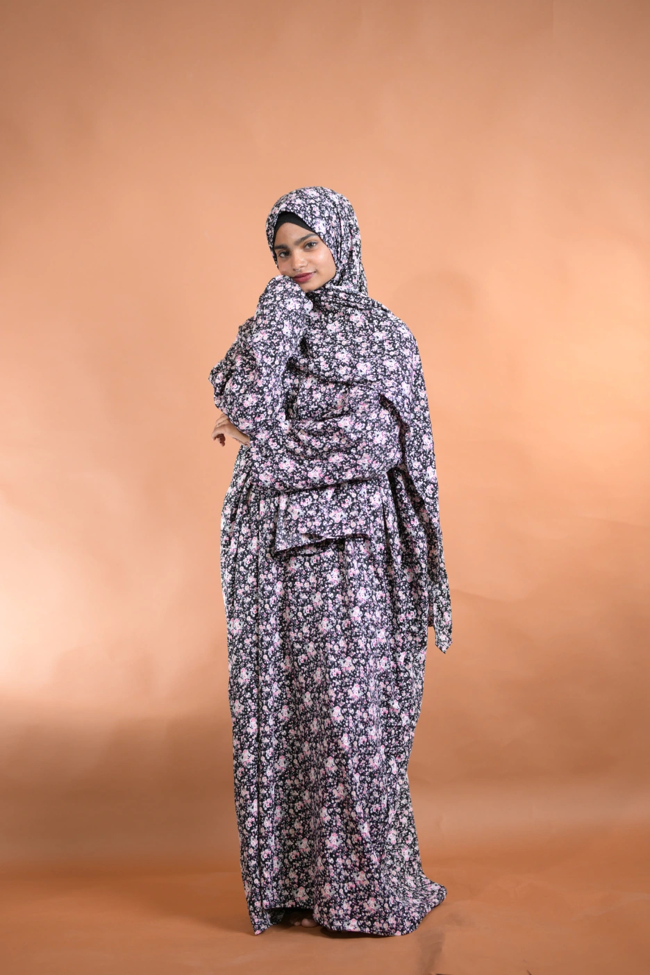 Elevate your prayer experience with our premium Floral Abaya Prayer Dresses, meticulously crafted from a luxurious cotton blend. These exquisite abayas feature a stunning array of floral patterns that add a touch of elegance to your spiritual moments.