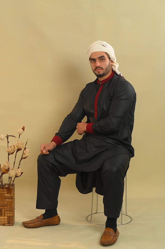 At Baraqah, we are committed to providing the highest quality products at an affordable price. Our black kurta pyjama is made with precision and care, ensuring that every detail is perfect. The Sozni embroidery is done by skilled artisans from Kashmir, who have honed their craft over generations.
