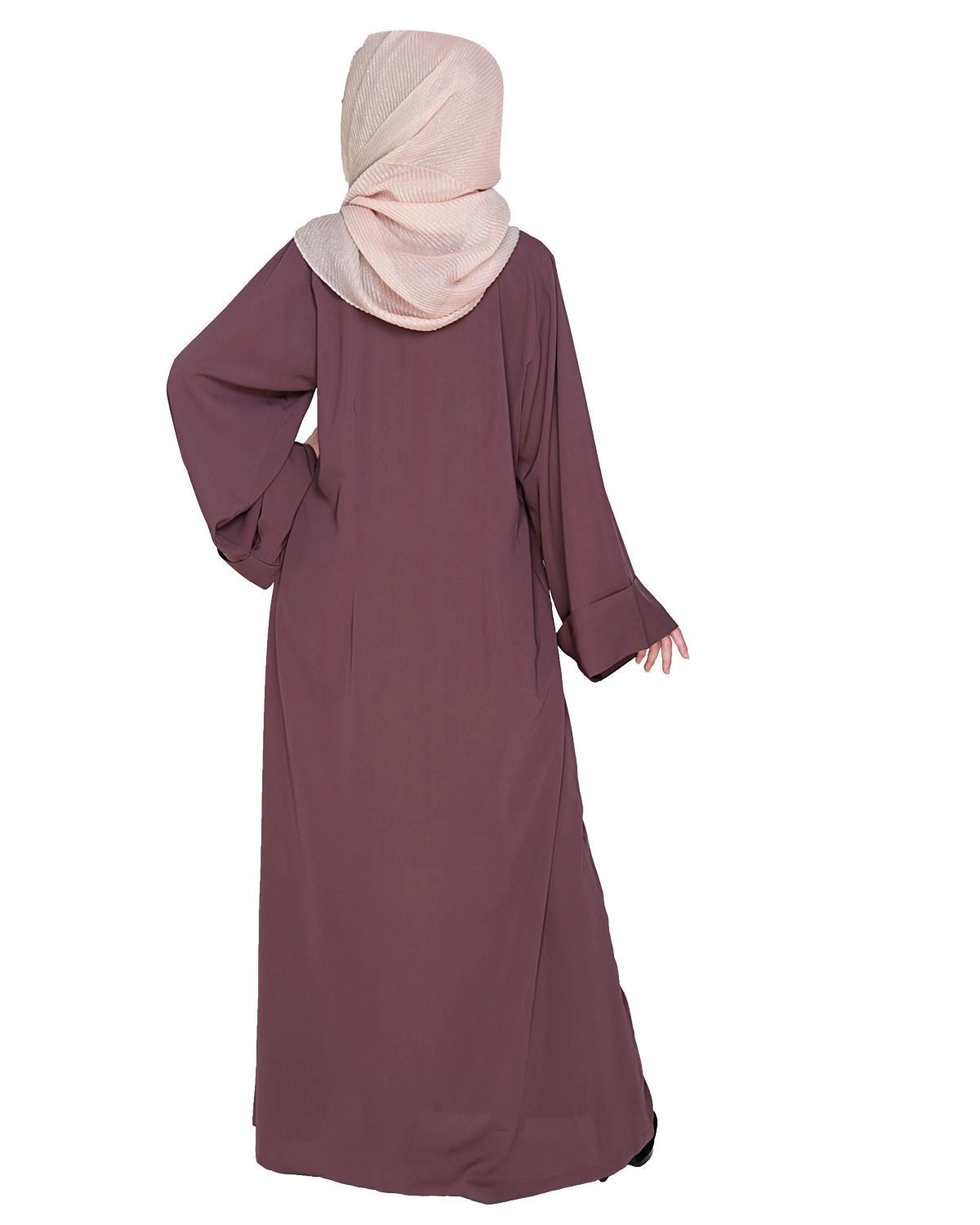 Elevate your modest fashion collection with our V-neck abaya featuring side pockets. This flowy and elegant garment is made from a light fabric, providing a rich texture, great fall, and opaque coverage. With its simple yet elegant design, this front-open abaya is perfect for various occasions. Please note that accessories shown are not included. Colors may vary slightly due to lighting. Ensure its longevity with dry cleaning. Shop now at Baraqah for a stylish and functional V-neck abaya that embodies grace and practicality.