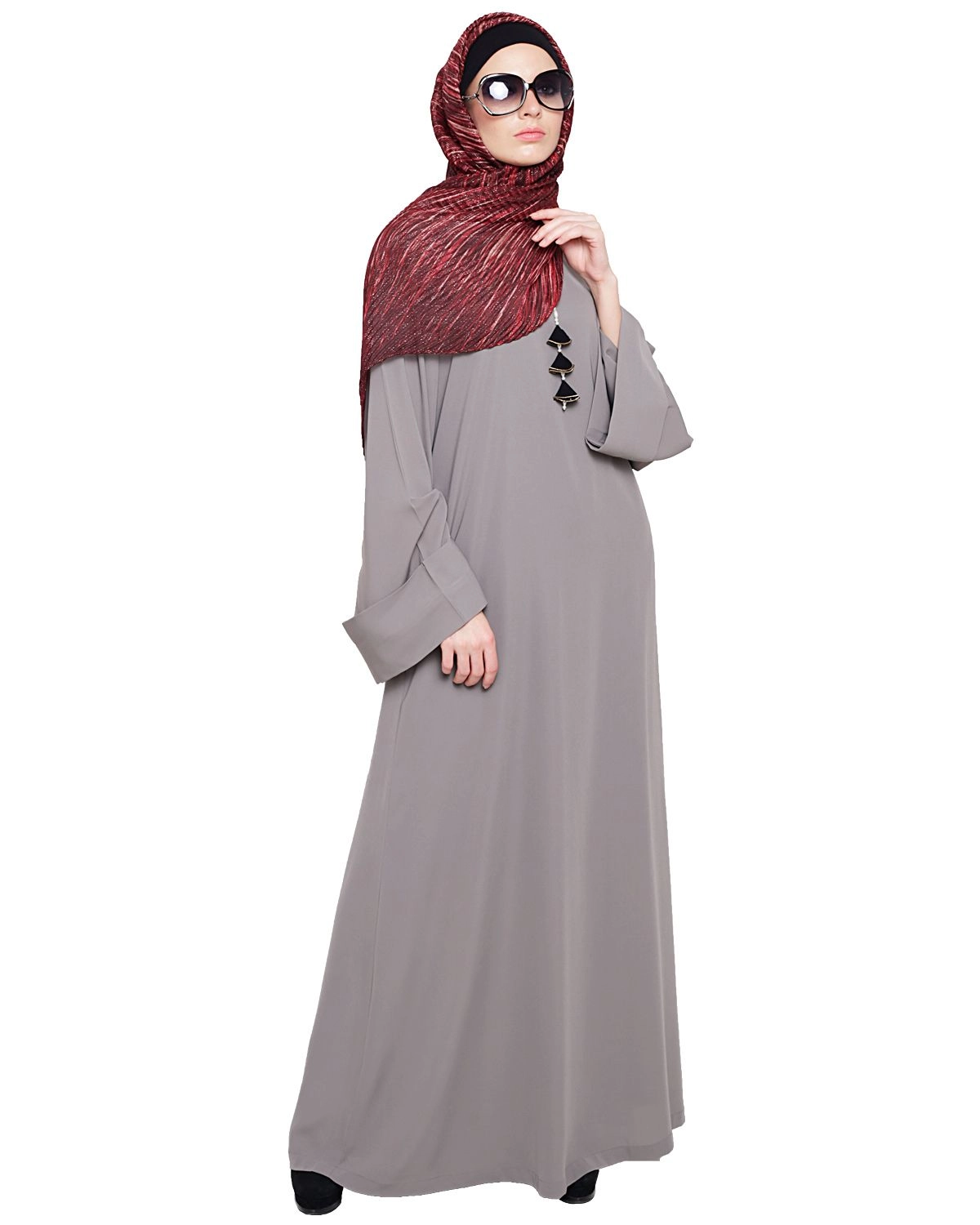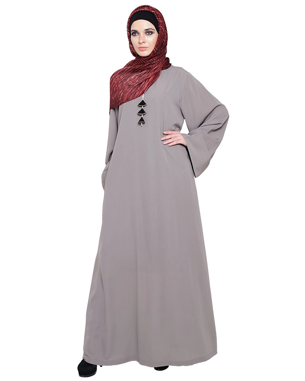 Elevate your modest fashion collection with our V-neck abaya featuring side pockets. This flowy and elegant garment is made from a light fabric, providing a rich texture, great fall, and opaque coverage. With its simple yet elegant design, this front-open abaya is perfect for various occasions. Please note that accessories shown are not included. Colors may vary slightly due to lighting. Ensure its longevity with dry cleaning. Shop now at Baraqah for a stylish and functional V-neck abaya that embodies grace and practicality.