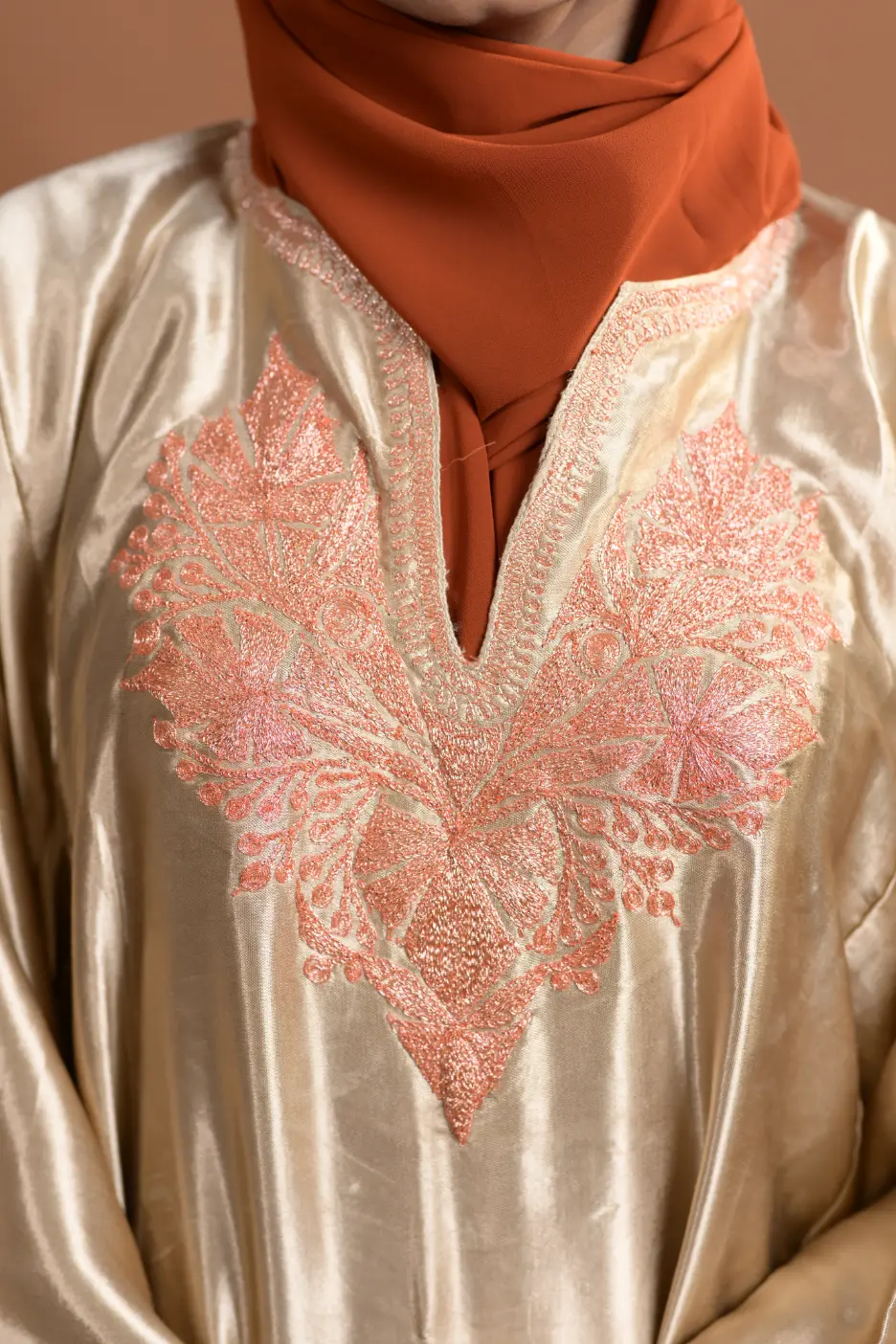 Introducing our exquisite Kashmiri Pherans for females – a blend of tradition and elegance, crafted from the finest Shiny Silk blend. These Pherans are a true embodiment of timeless beauty, designed to make you stand out on any occasion.