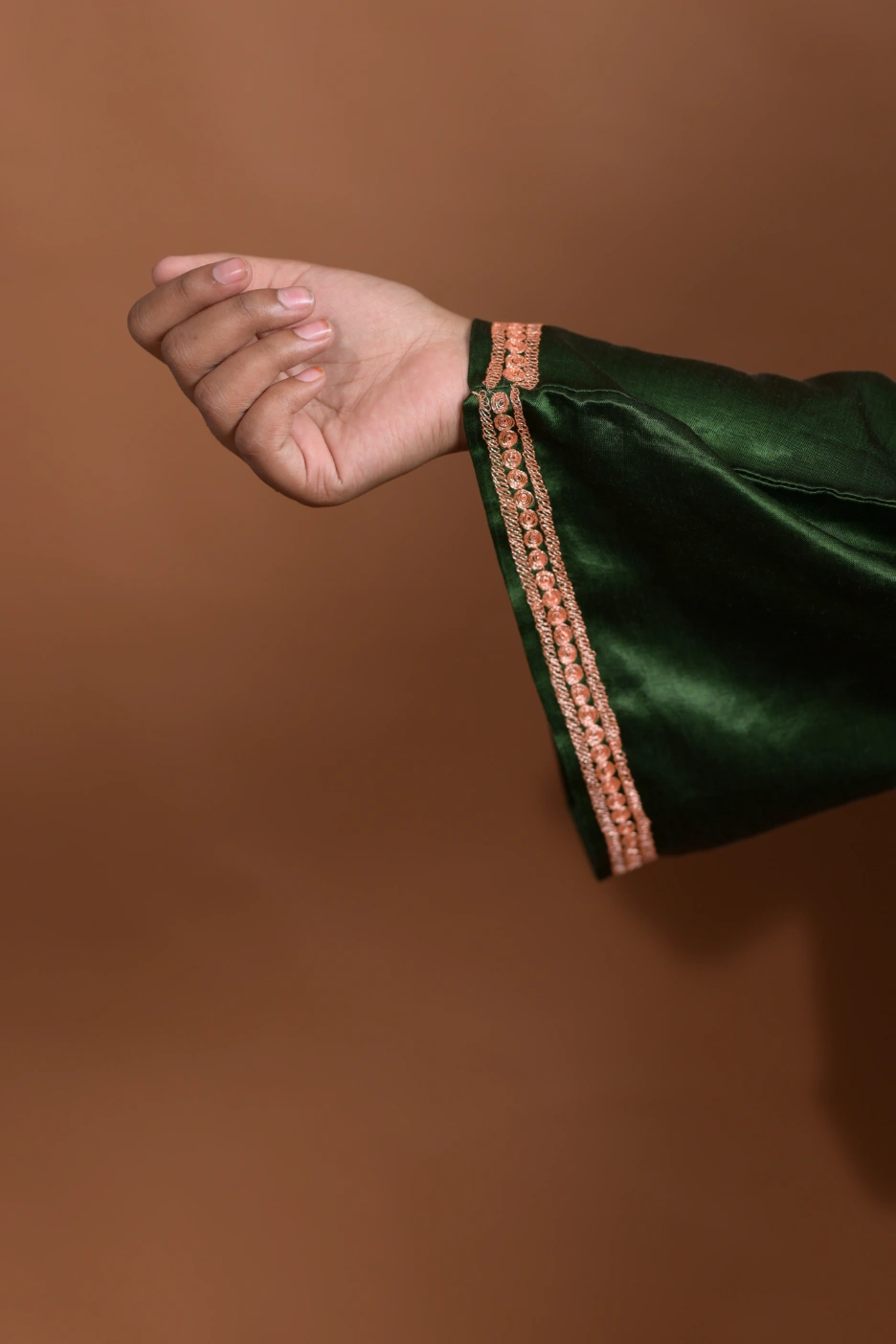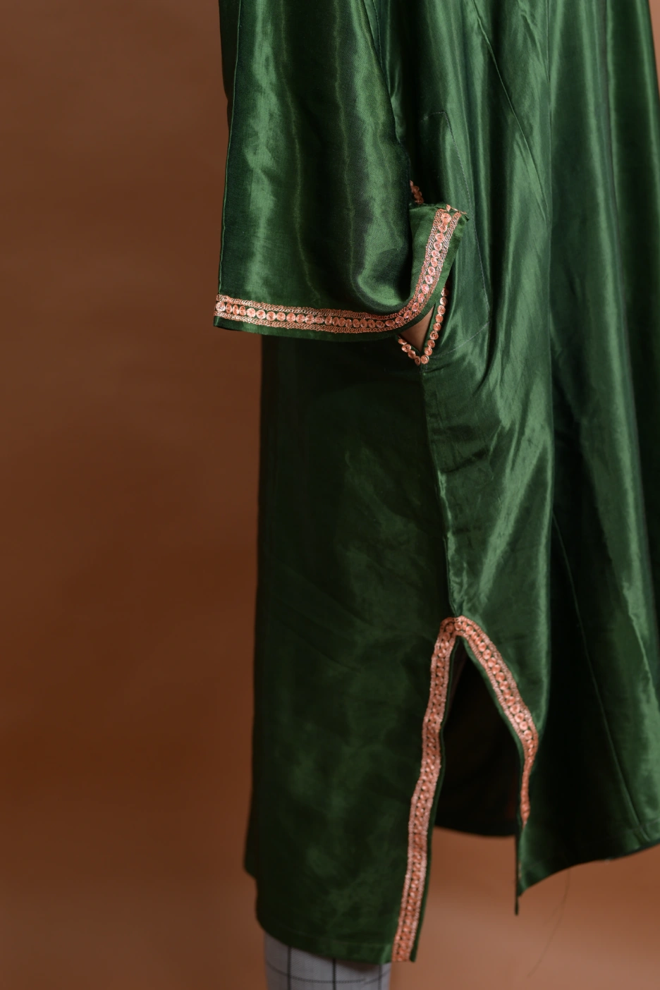 Each Pheran is meticulously adorned with intricate Zari embroidery, adding a touch of opulence and charm to the overall design. The traditional Kashmiri motifs and patterns are delicately woven into the fabric, creating a visual masterpiece that celebrates the rich cultural heritage of Kashmir.