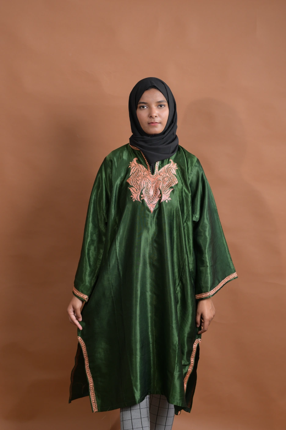 Immerse yourself in the world of elegance, tradition, and comfort with our Kashmiri Pherans for females. Order now and experience the magic of shimmering Shiny Silk blend, intricate Zari embroidery, and a free size that embraces your unique beauty. Step into the spotlight of sophistication – your journey starts with our captivating Kashmiri Pherans.