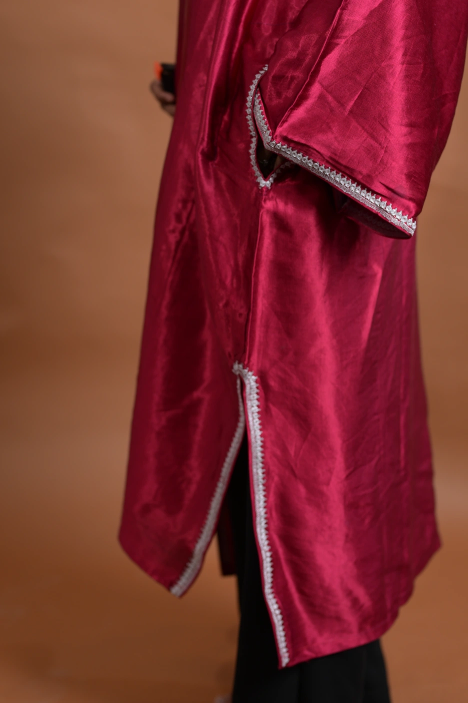 Introducing our exquisite Kashmiri Pherans for females – a blend of tradition and elegance, crafted from the finest Shiny Silk blend. These Pherans are a true embodiment of timeless beauty, designed to make you stand out on any occasion.