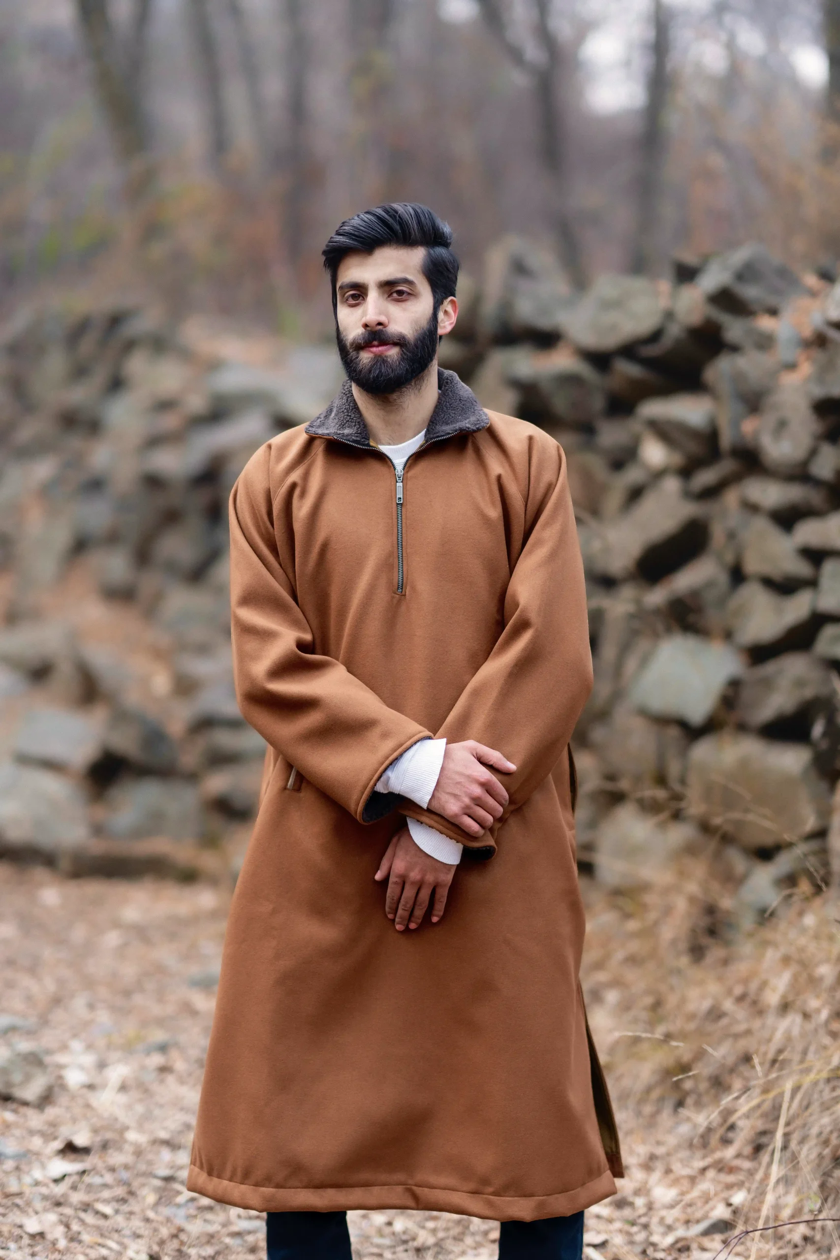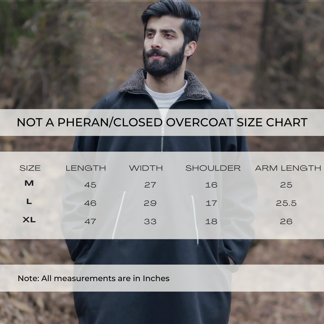Redefine winter fashion with the Closed Overcoat | Not A Pheran, an innovative Kashmiri-inspired garment designed for those who seek both style and functionality. Crafted from premium fleece, this modern masterpiece blends the warmth of traditional Pherans with a sleek, tailored design, making it perfect for contemporary wardrobes.