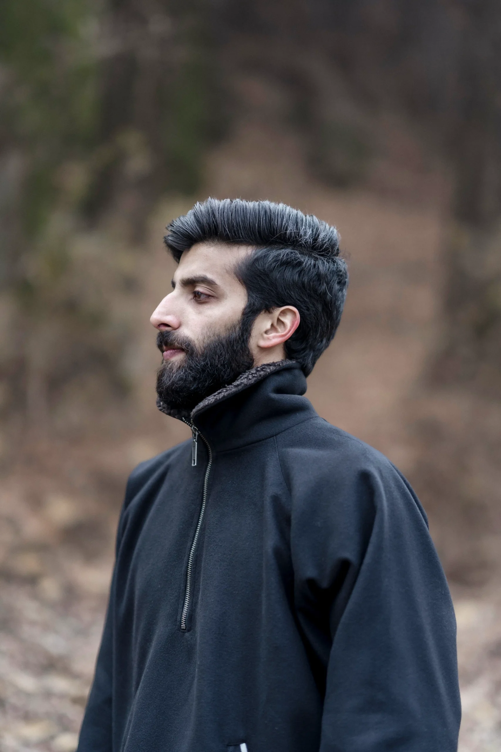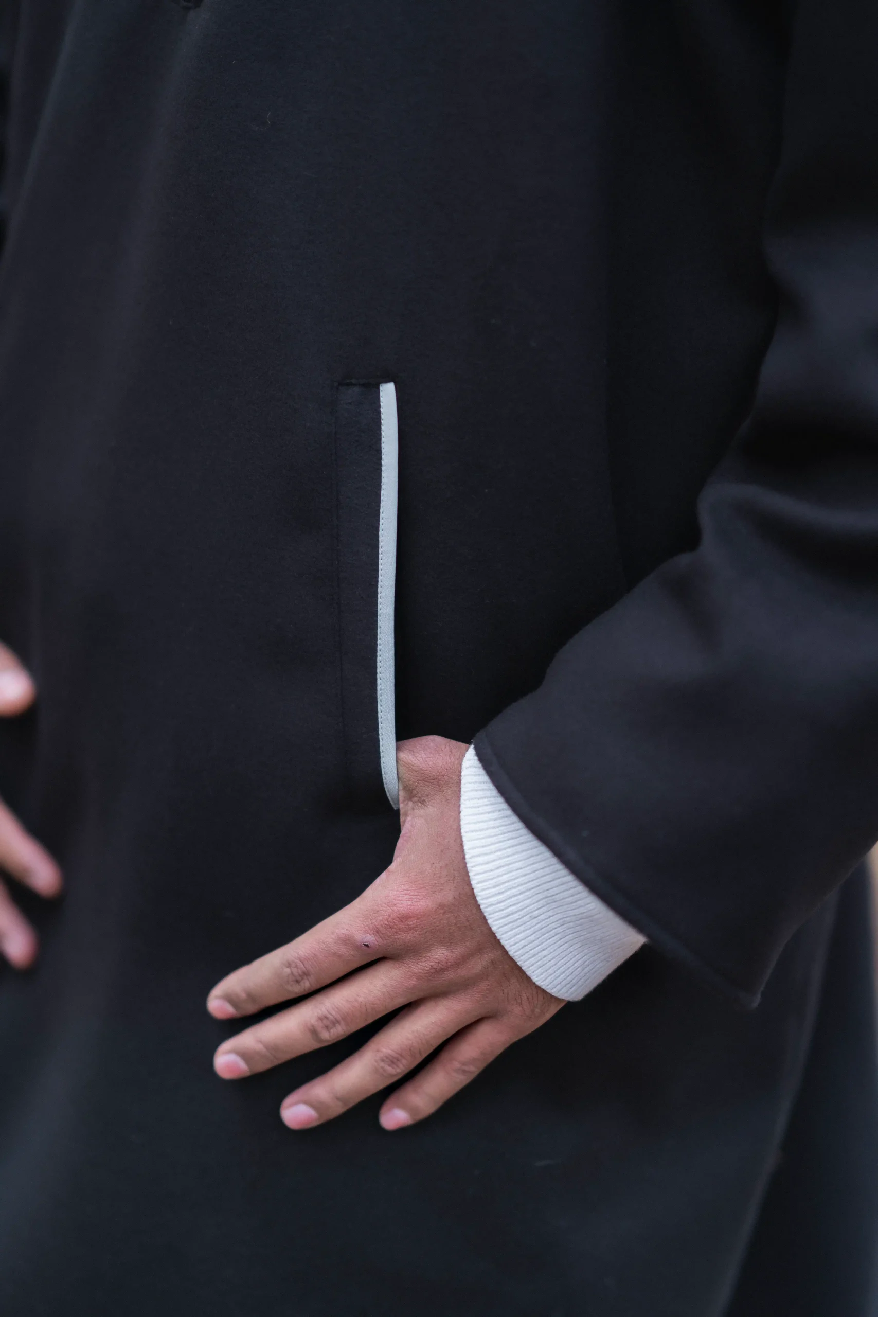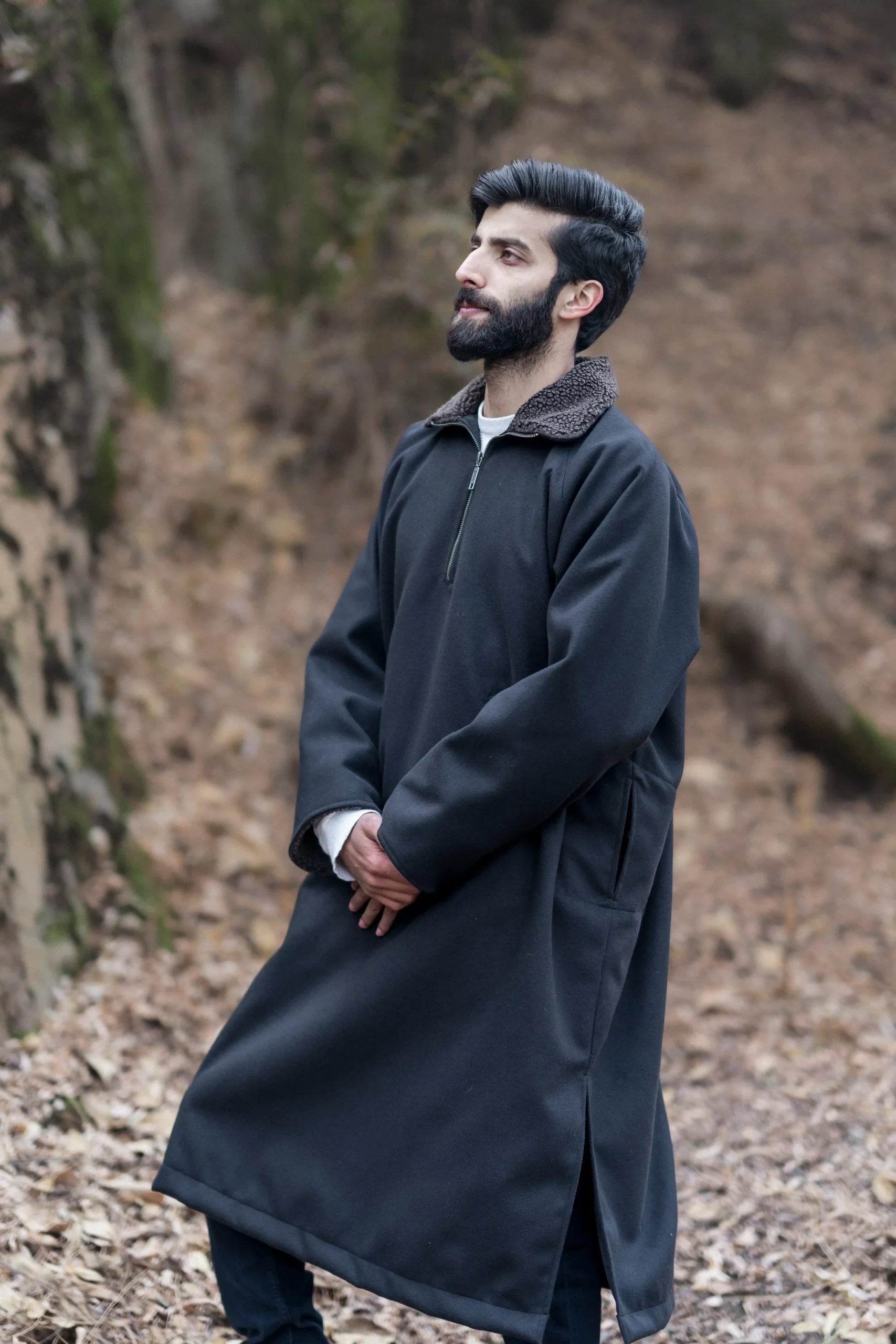 Onyx Black Fleece Closed Overcoat | Not A Pheran