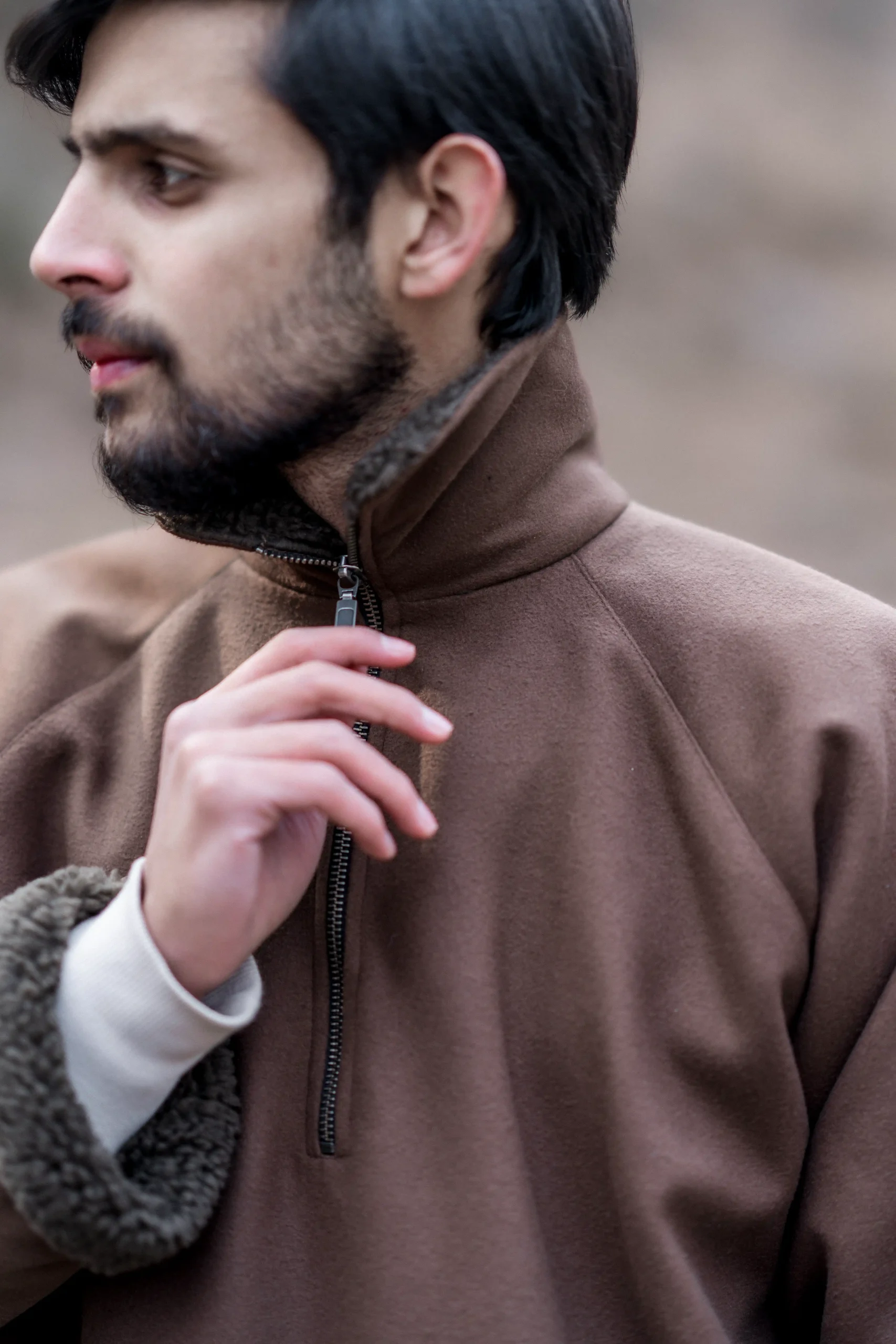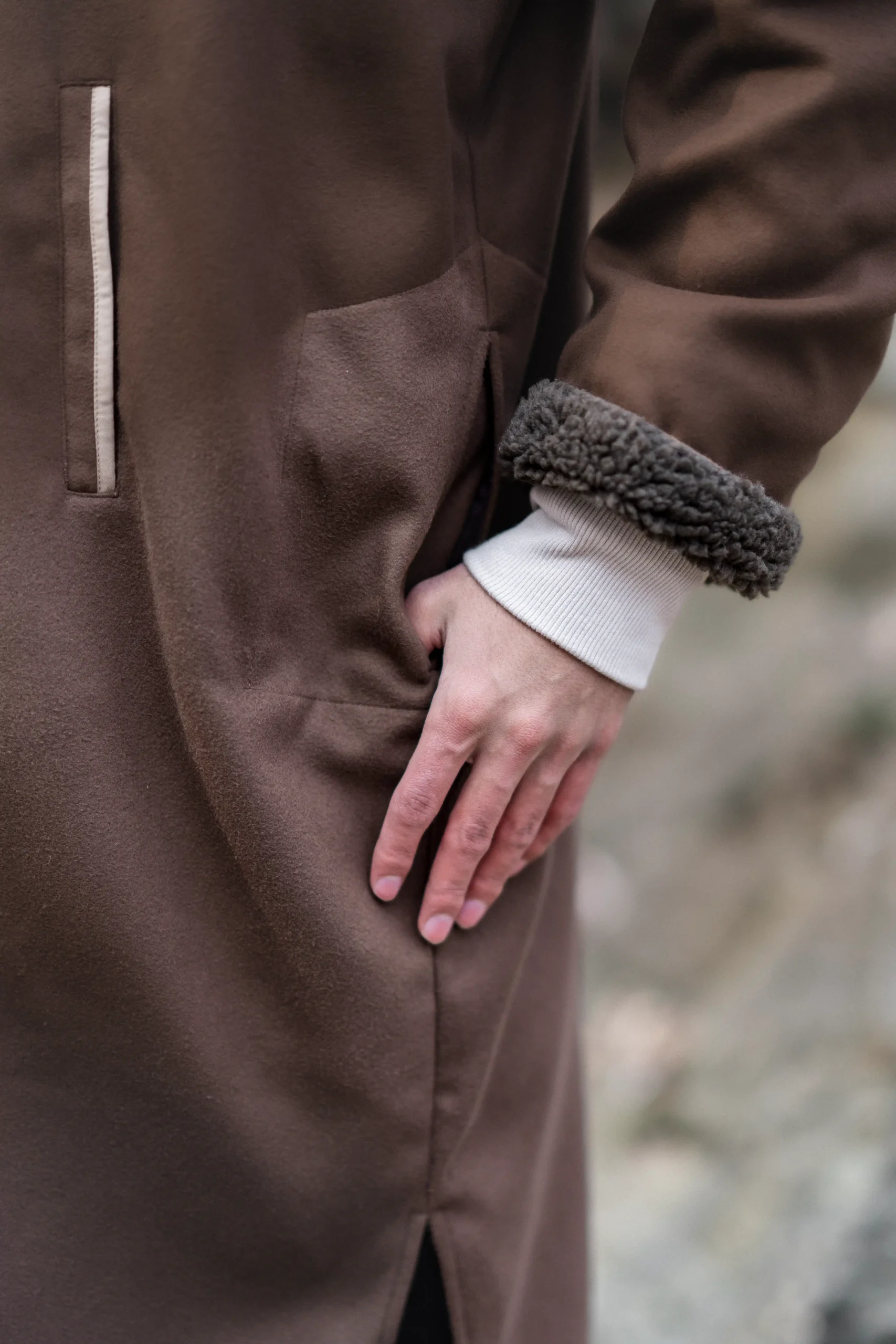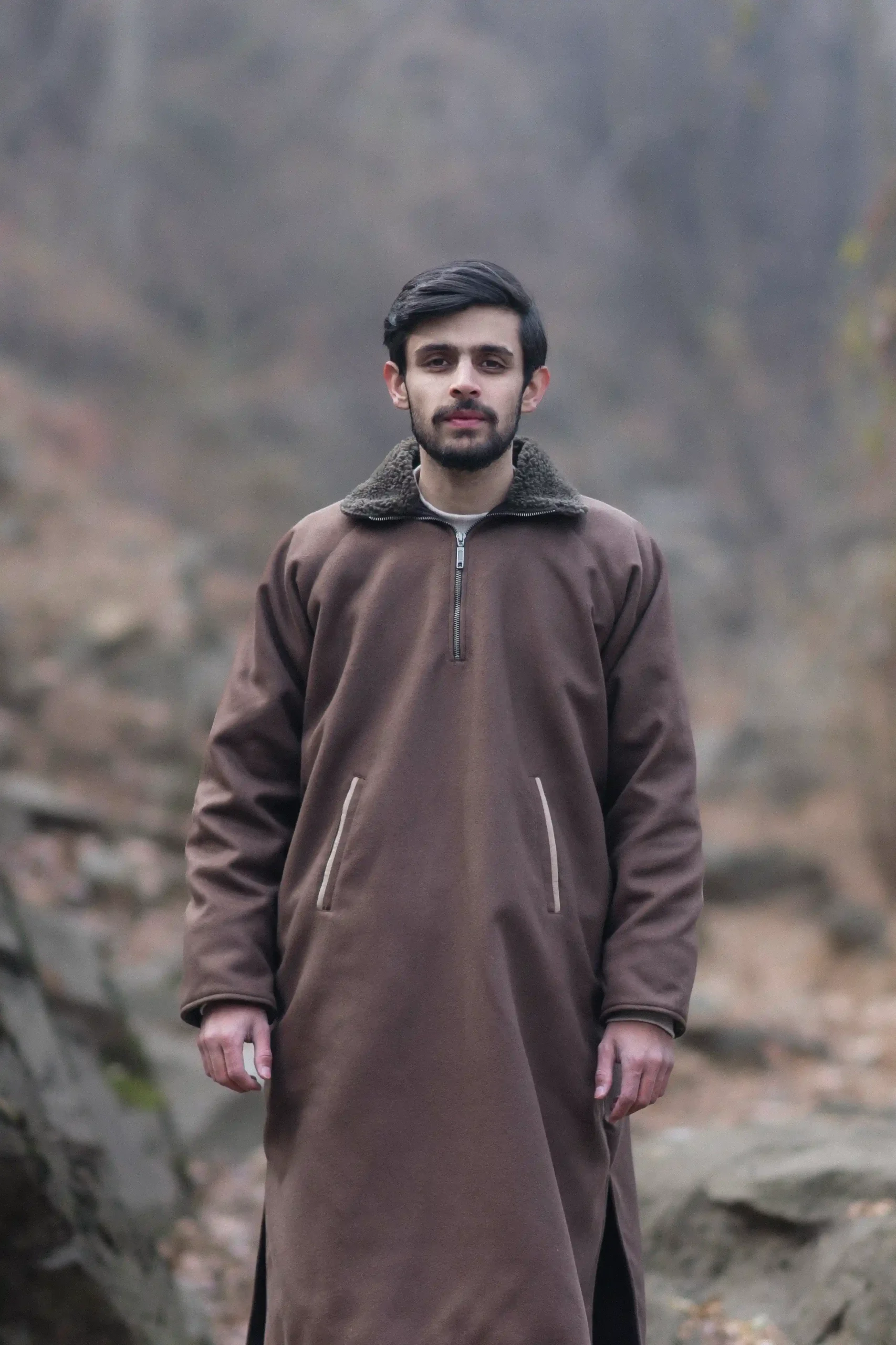 Pecan Brown Fleece Closed Overcoat | Not A Pheran