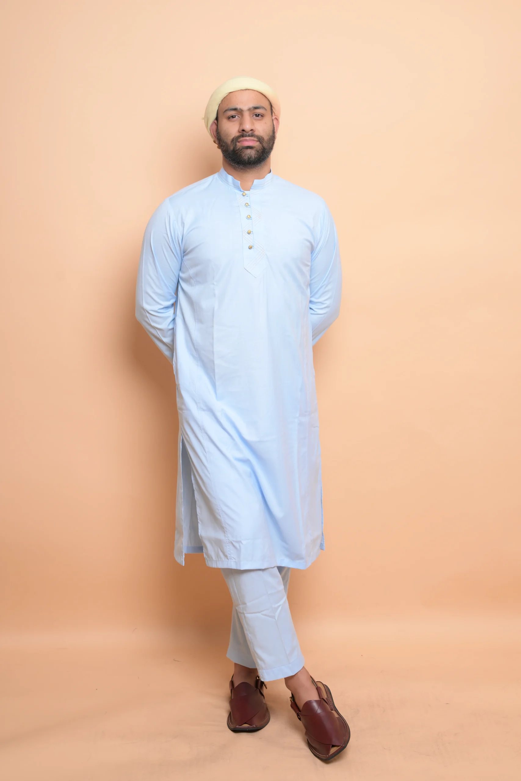 This stylish kurta pyjama set is the go-to attire for special occasions and more. It is made of superior quality fabric and has unmatched design.